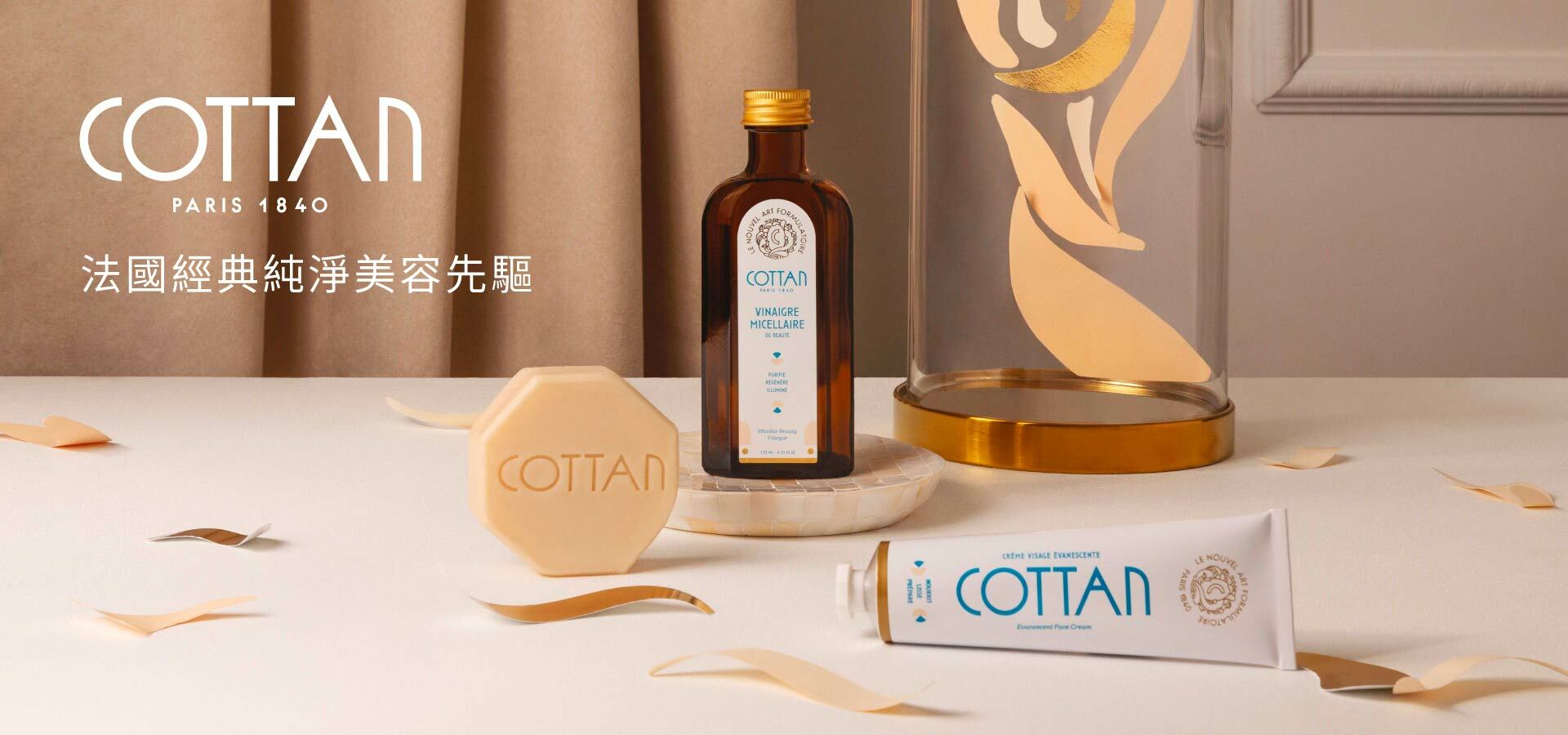 COTTAN創立於配方藝術和新藝術運動的交匯處,這兩個學科都追求在「透過放大自然之美來實現美的目標」。今天,它懷著深深的信念脫繭重生,通過結合當代科學與這個美好時代的靈感和技藝,為美的未來帶來啟示。