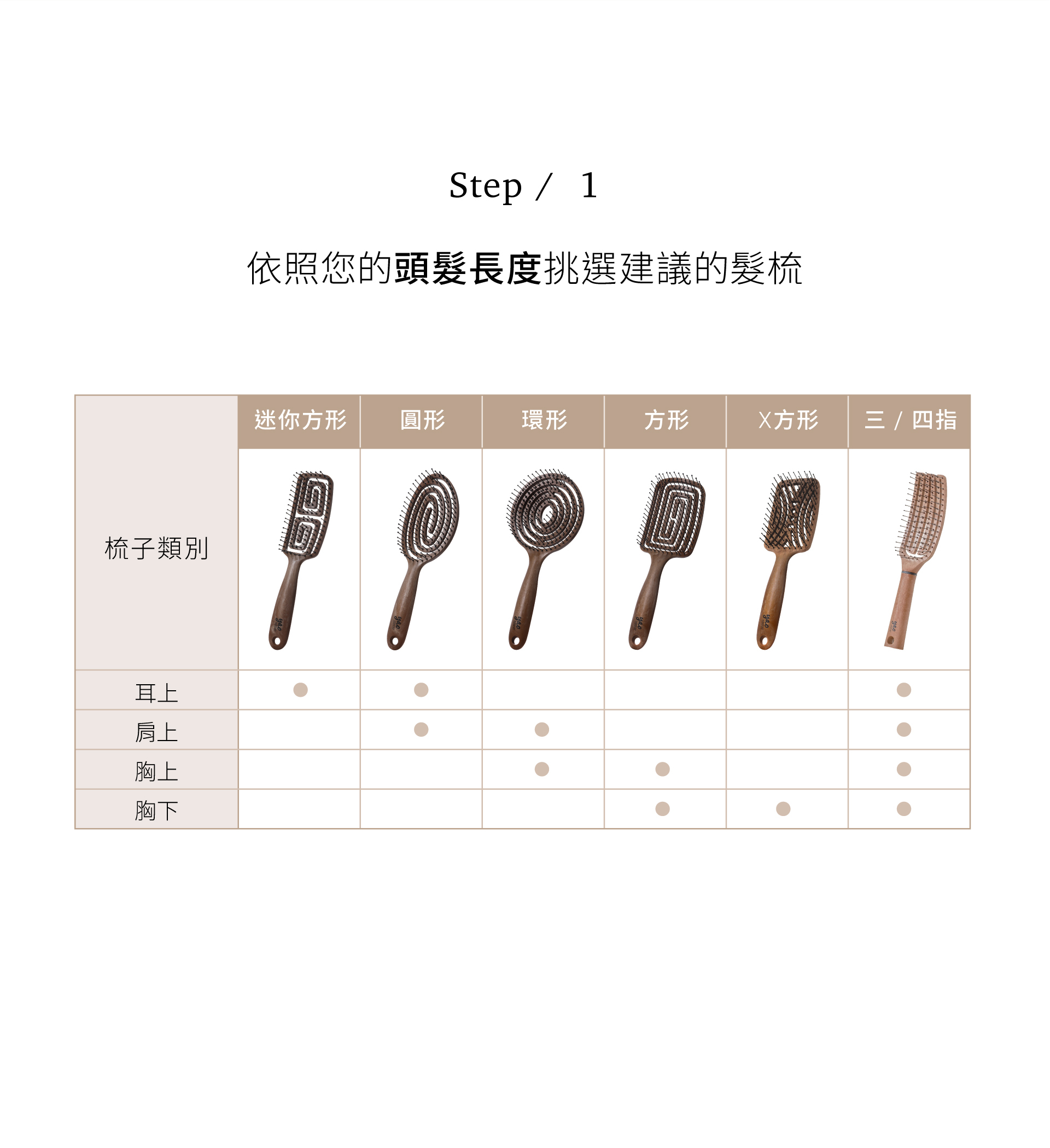 "依照自己的頭型、在不同髮梳彈力、速度、及材質下、