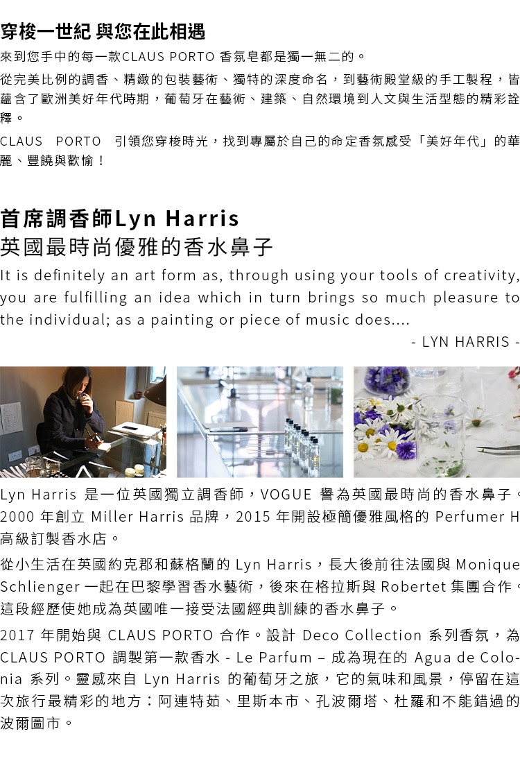 包裝設計上呈現一位具有魅力的18世紀女性,靈感來自CLAUS PORTO在1920年代的一支名為「Smart」的經典香水。