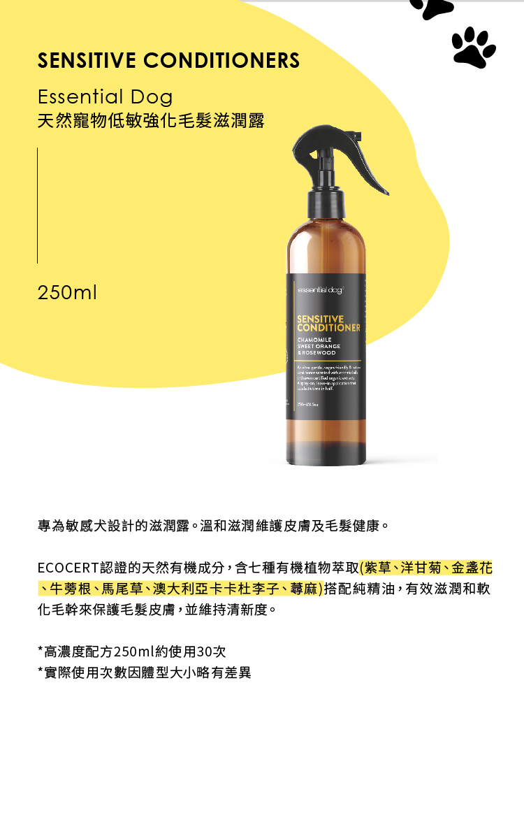 【惜福商品】Essential Dog 天然寵物低敏強化毛髮滋潤露 250ml (有效期限:2024/9)