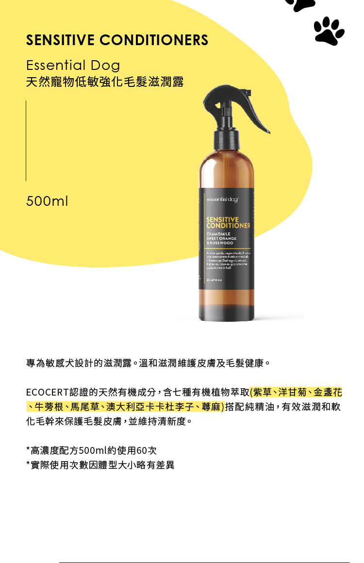 【惜福商品】Essential Dog 天然寵物低敏強化毛髮滋潤露 500ml (有效期限:2024/9)