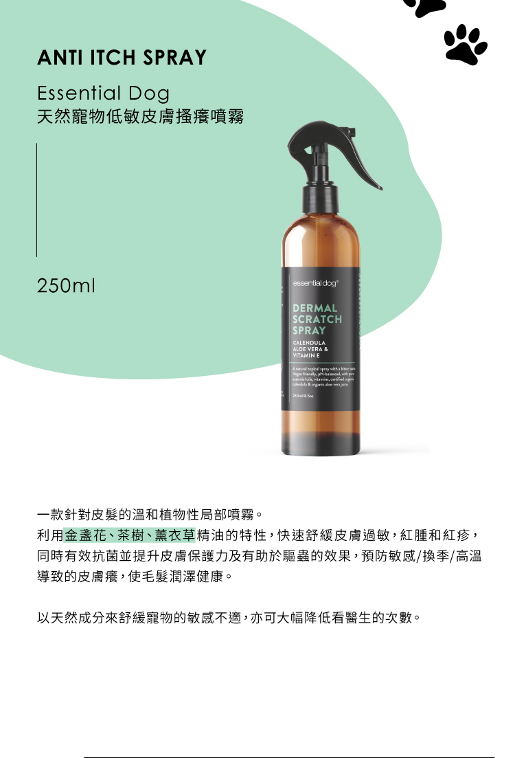 【惜福商品】Essential Dog 天然寵物低敏皮膚搔癢噴霧 250ml (有效期限:2024/12)